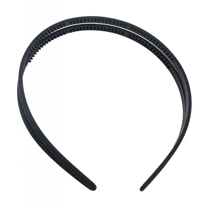 Diadema de doble tira en negro y acabado mate. El diseño del interior tiene pequeños dientes que mantienen bien sujeto el cabello y no se desliza.  Un clásico básico en tu equipo beauty.