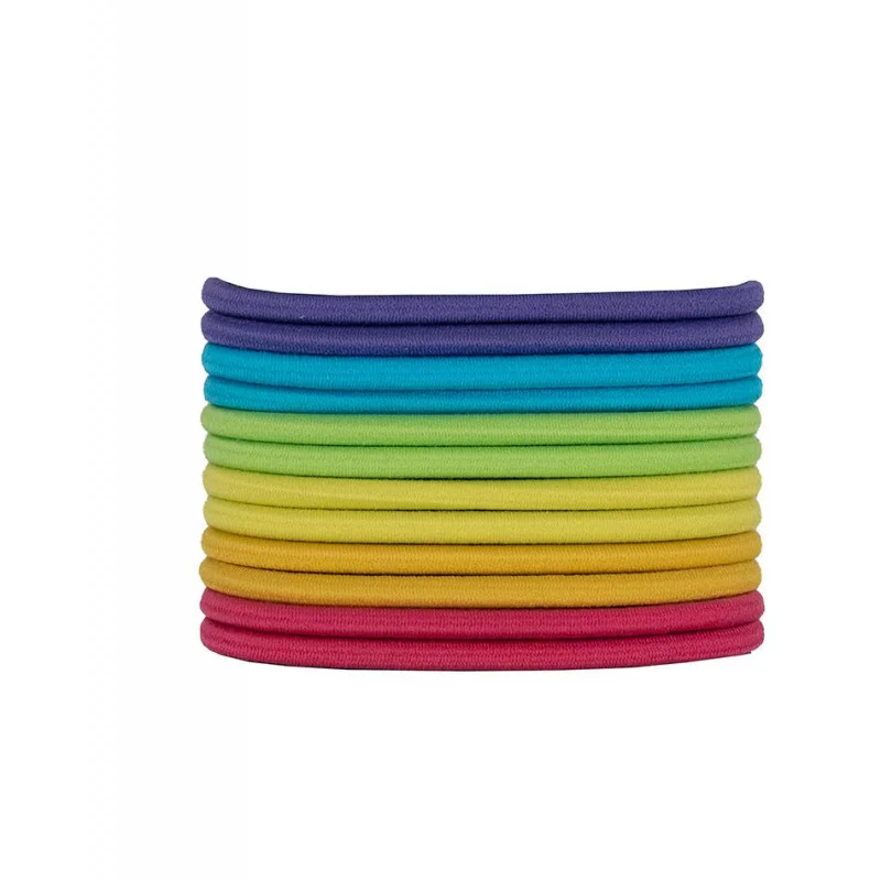 Doce coleteros elásticos finos en distintos tonos.  Para coletas, trenzas o cualquier peinado que imagines, ideales para combinar los diferentes colores y darle un toque original a tus recogidos.