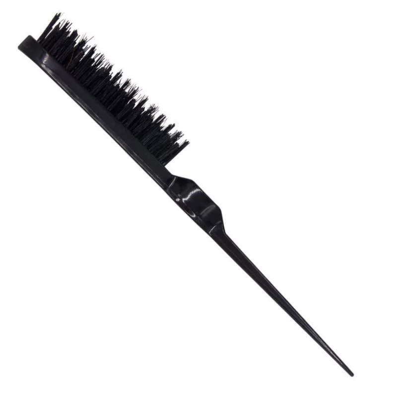 Púas mixtas 50% jabalí  y 50%  nylon para crepar el cabello de forma rápida y suave consiguiendo el máximo volumen. Perfecto para conseguir coletas y moños brillantes  sin cabellos sueltos. Su mango acabado en punta permite separar fácilmente los mechones. Fabricado en plástico reciclado.
