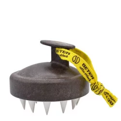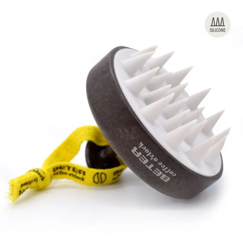 Diseño ergonómico elaborado con café molido y plástico reciclados, incorpora 19 púas de silicona de forma cónica. Masajea y exfolia el cuero cabelludo estimulando la circulación, evita la acumulación de residuos que pueden generar pérdida de cabello. Limpia en profundidad y desobstruye los poros del cuero cabelludo.