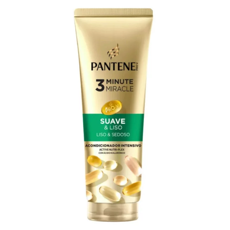 Descubre el acondicionador Pantene 3 Minute Miracle Suave y Liso, que cuenta con la tecnología Pro-V y ACTIVE NUTRI-PLEX. Este tratamiento profundo está diseñado para aportar nutrición y reparación*, convirtiéndose en un elemento clave de tu rutina de cuidado capilar.