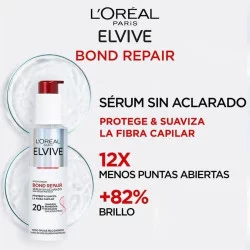 Protege y suaviza la fibra capilar con el Sérum sin aclarado Elvive Bond Repair de L'Oréal Paris, el paso Nº4 de nuestra rutina de reparación capilar desde el interior, consigue un 82% más de enlaces capilares reconstruidos y un 98% menos de rotura.