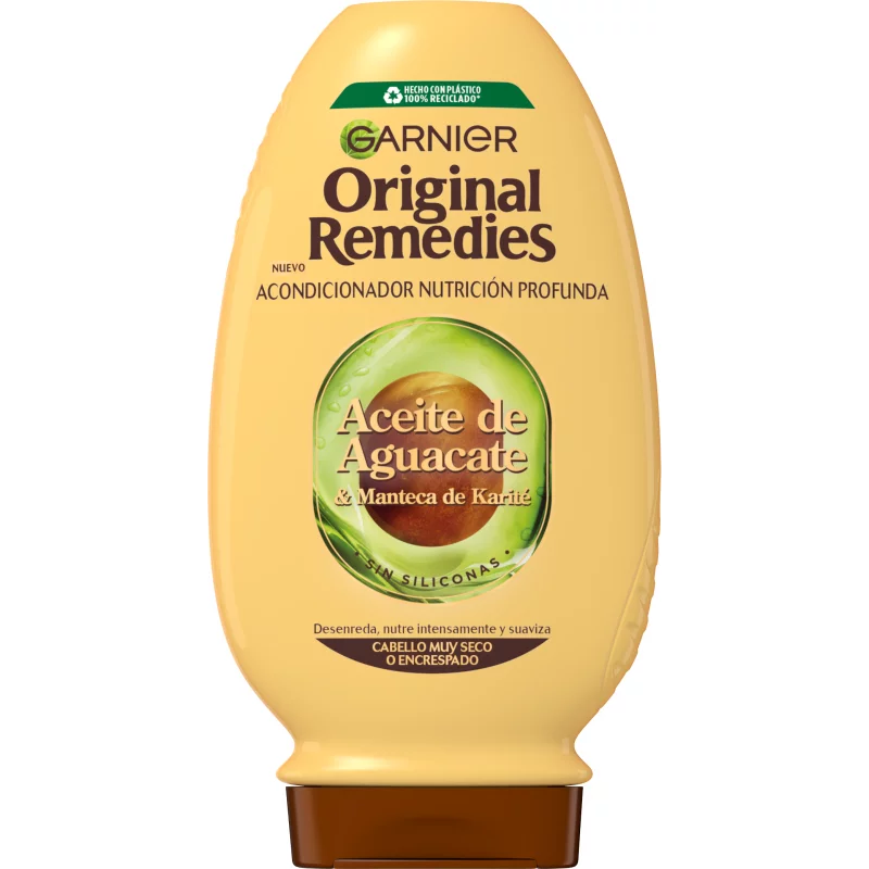 Remedios originales con aceite de aguacate y manteca de karité. La nueva gama de Remedios originales con aceite de aguacate y manteca de karité de Garnier es un tratamiento especial para el cabello encrespado.