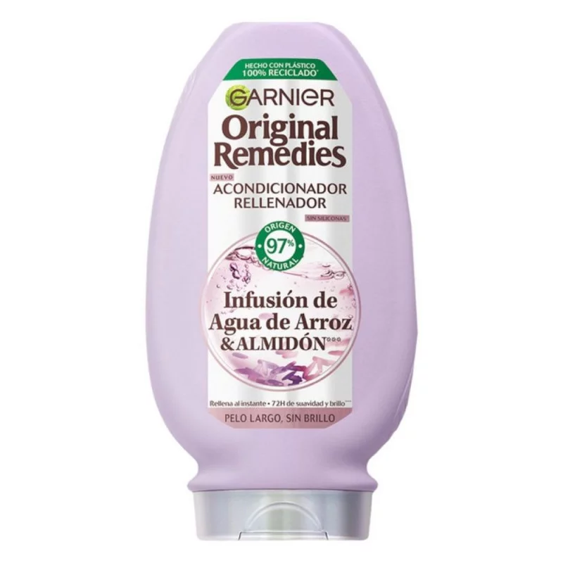 Garnier Original Remedies Acondicionador Rellenador con Infusión de Agua de Arroz, para cabello largo y sin brillo.