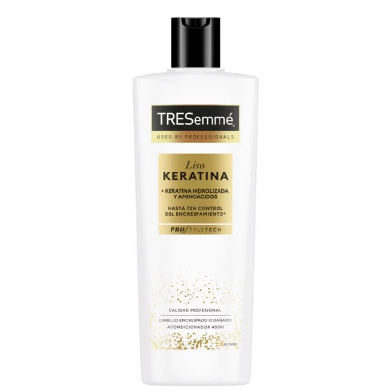 El acondicionador TRESemmé Liso KERATINA, combate el encrespamiento con nuestro poderoso sistema Liso Keratina, con Keratina hidrolizada, diseñado para transformar el cabello encrespado y lograr un acabado suave y liso hasta 72 horas. Hasta 72 horas control del encrespamiento*. Los estilistas de peluquería saben que un gran estilo comienza con la mejor base de lavado y cuidado. TRESemmé PRO Style Tech, con Aminoácidos y Ceramidas, funciona desde el interior para conseguir un cabello fuerte y manejable. DEFINE LA MEJOR VERSIÓN DE TU CABELLO CON TRESEMMÉ Aplica sobre el cabello húmedo desde la mitad hasta las puntas. Deja actuar durante 2-3 minutos y aclara. Evita el contacto con los ojos. En caso de contacto, lavar con abundante agua. El acondicionador está hecho con una botella reciclable y 100% plástico reciclado** y en formato familiar. Para conservar el producto, mantenerlo en un lugar fresco y seco. Una vez abierto, utilizarlo antes de 12 meses.