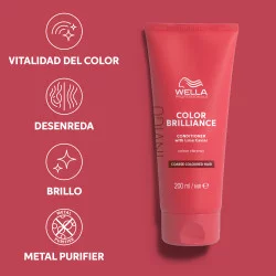 El Acondicionador Intensificador del Color de Color Brilliance Invigo de Wella Professionals está diseñado para potenciar el brillo y realzar la intensidad del color del cabello, para un acabado suave y atractivo. Este acondicionador está enriquecido con Caviar de Lima, Vitamina E y antioxidantes para proteger el cabello de las agresiones del medio ambiente y mantenerlo suave y brillante. Diseñado para cabello grueso, con Purificador de Metales para proteger el cabello de los metales nocivos presentes en el agua. Para obtener mejores resultados, utilizar con el champú y la mascarilla Color Brilliance de Wella para completar la rutina de cuidado capilar. Los productos de Wella Professionals son el regalo perfecto para la mujer que desea cuidar su cabello.