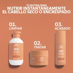Aplicar sobre el cabello limpio y húmedo una vez a la semana. Dejar actuar 5 minutos. Enjuagar. Mejor resultado con el champú y acondicionador Nutri Enrich.
