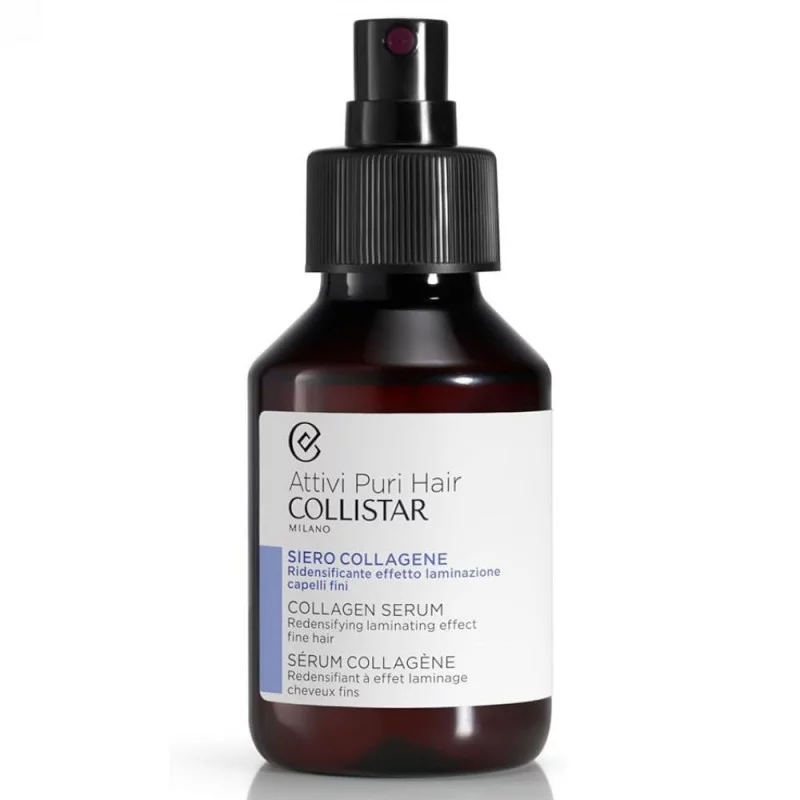 Experimenta la elegancia y efectividad del Sérum Colágeno Redensificante Attivi Puri Hair de Collistar. Este spray ligero ayuda a dar volumen y densidad al cabello fino y sin volumen, transformándolo desde la raíz hasta las puntas. Su innovadora fórmula combina Colágeno y Proteínas vegetales para proporcionar un cuidado capilar excepcional.