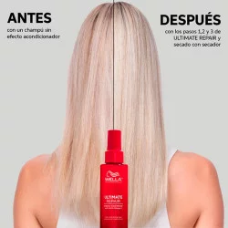 Descubre Ultimate Repair Miracle Hair Rescue de Wella Professionals, un lujoso spray sin aclarado que repara el daño capilar en solo 90 segundos. Transforma visiblemente el cabello tras un solo uso: 12x más suave*, un 99% menos de rotura*, y un brillo legendario que dura hasta cuatro lavados**. Enriquecido con ácido alfa hidroxiácido (AHA) para reconstruir la fuerza interior del cabello y Omega-9 para reponer la barrera exterior del cabello dañado. Reparación instantánea para todo tipo de cabellos.