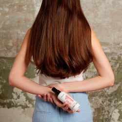 2. Frotar entre las manos y aplicar sobre el cabello de medios a puntas.