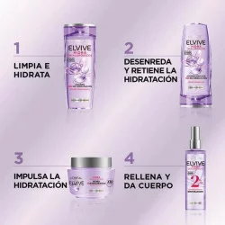 ¡El poder del Ácido Hialurónico ahora en tu pelo! Descubre el nuevo champú con ácido hialurónico que envuelve tu pelo y lo rellena de hidratación al instante durante 72H. Gracias al Champú Hidra Hialurónico luce un pelo más brillante, x10 más hidratado y con más cuerpo, todo esto sin apelmazar. El ingrediente más buscado de skincare, ahora en tu pelo. #PeloHialuronico con Elvive Hidra Hialurónico.