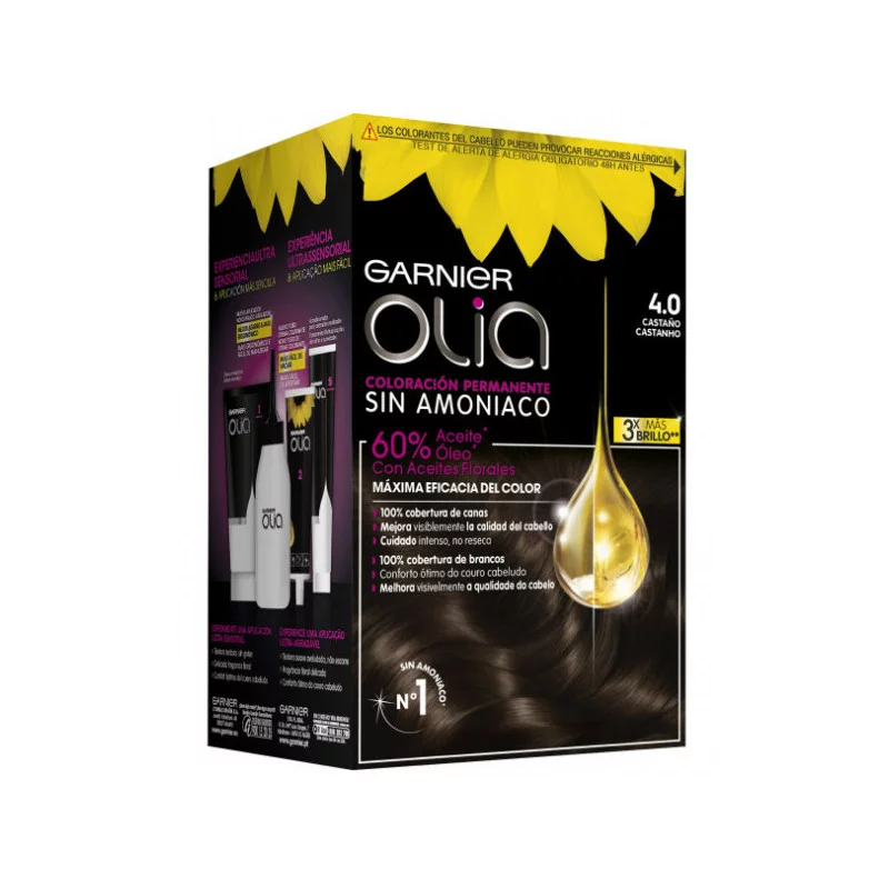 Garnier Olia es una coloración permanente con aceites florales de origen natural, sin amoniaco para un olor agradable y respeto del cuero cabelludo. Coloración tras coloración, mejora visiblemente la calidad de tu pelo para un color intenso más brillante y más bonito, y un pelo sedoso y cuidado. 100% cobertura de canas.