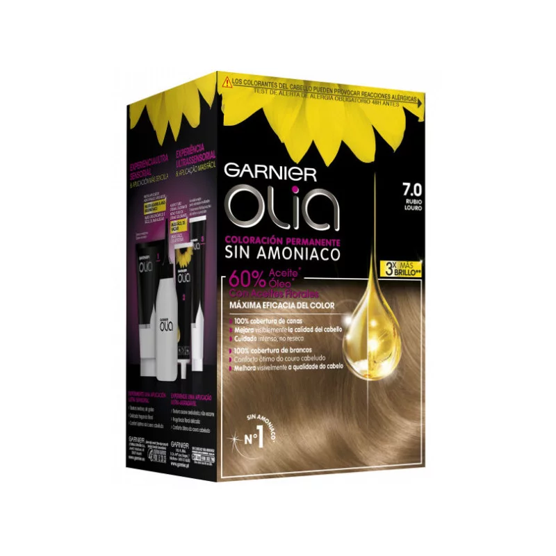 Garnier Olia es una coloración permanente con aceites florales de origen natural, sin amoniaco para un olor agradable y respeto del cuero cabelludo. Coloración tras coloración, mejora visiblemente la calidad de tu pelo para un color intenso más brillante y más bonito, y un pelo sedoso y cuidado. 100% cobertura de canas.