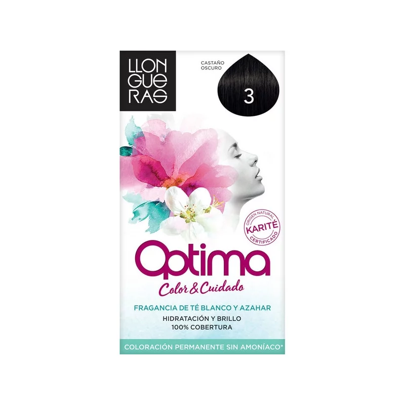 Tinte Optima Color & Cuidado castaño oscuro nº 3 coloración permanente sin amoniaco caja 1 unidad fragancia de té blanco y azahar