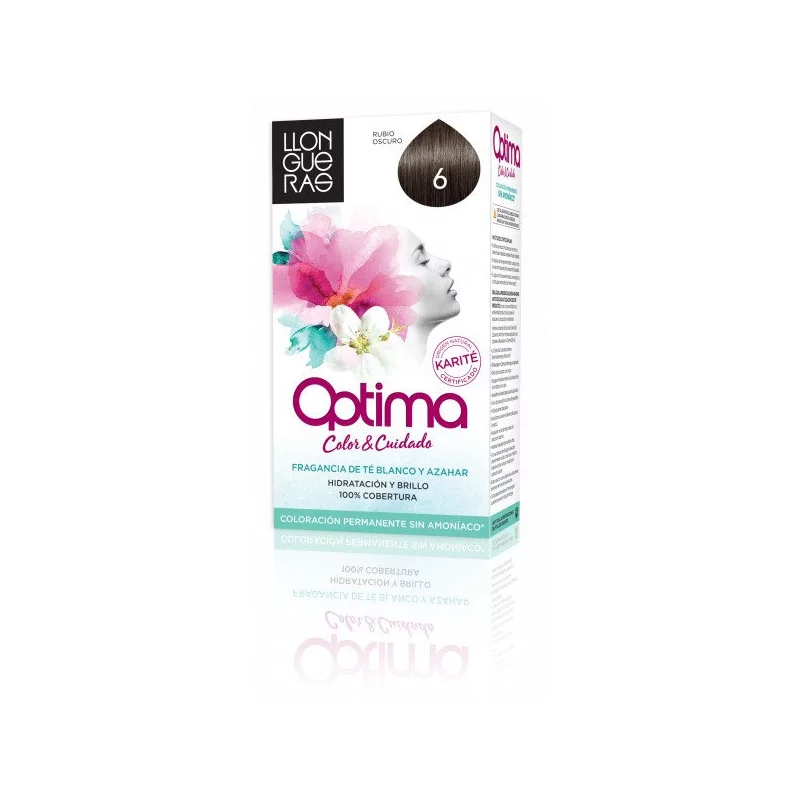 Tinte Optima Color & Cuidado rubio oscuro nº 6 coloración permanente caja 1 unidad fragancia de té blanco y azahar