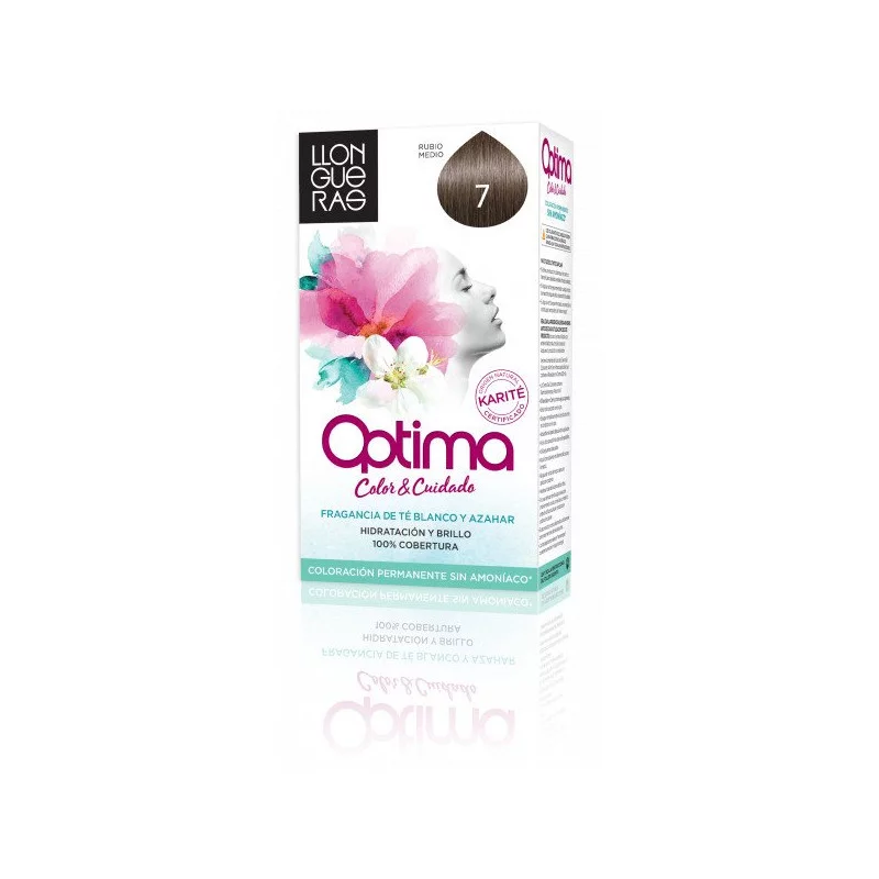 Tinte Optima Color & Cuidado rubio medio nº 7 coloración permanente sin amoniaco caja 1 unidad fragancia de té blanco y azahar