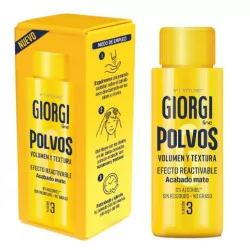 Obtén un gran volumen y una apariencia de salón de inmediato con los Polvos Voluminizadores Giorgi. Su mezcla única, que utiliza la tecnología Powder to Wax™, convierte los polvos en una cera suave al entrar en contacto con el cabello, levantándolo desde la raíz para un volumen profundo y duradero sin apelmazar.