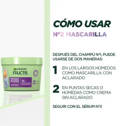 Con nuestra innovadora Mascarilla Nº2 del Método Rizos de Garnier Fructis, hemos trabajado nuestra fórmula para que tus rizos recuperen el 100% de la hidratación perdida*, ¡y eso no es todo! Te brindamos 100 horas de hidratación* para rizos increíbles.