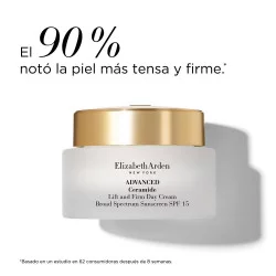 Elizabeth Arden Advanced Ceramide Lift & Firm Day Cream es una crema antiedad de uso diario que combate eficazmente los signos del envejecimiento. Con la tecnología triple acción multiplica cinco veces su contenido en Ceramidas que aportan una extraordinaria hidratación que eliminan de forma eficaz líneas y arrugas de expresión.