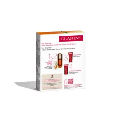 El cofre de tratamientos de juventud redensificantes y embellecedores que responden a las necesidades de las pieles maduras y debilitadas por los cambios hormonales de la edad. Un efecto tensor inmediato y arrugas visiblemente atenuadas gracias a la combinación del icónico Double Serum, con 22 extractos de plantas para combatir los signos visibles de la edad, y de las cremas Multi-Intensiva Rose Radiance y Multi-Intensive Noche con extracto de harungana y sus propiedades redensificantes. Además, con la acción iluminadora de la base de maquillaje SOS primer. Todos estos tratamientos se presentan en un gran neceser.