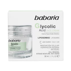 La crema facial Glycolic Acid de Babaria renueva y regenera la piel, con efecto antiedad.