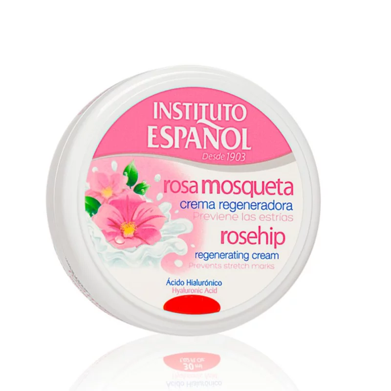 La Loción Hidratante Instituto Español está enriquecida con Rosa Mosqueta y ácido hialurónico, de manera que estimula la hidratación y la elasticidad natural de la piel y ayuda a eliminar cicatrices y estrías. La Rosa Mosqueta tiene una gran propiedad que revigoriza las células productoras de colágeno, elastina y ácido hialurónico que son responsables de la firmeza y elasticidad de la piel. El ácido hialurónico, que atrae potentemente al agua, es un hidratante de la piel. Favorece la lubricación de las fibras de colágeno, por lo que la piel es más firme. La potente combinación de Rosa Mosqueta y ácido hialurónico retrasan el envejecimiento de la piel.