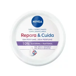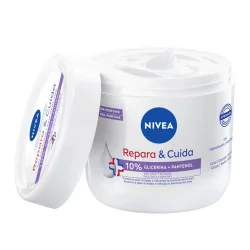 NIVEA Repara & Cuida Crema corporal con 10% Glicerina y Pantenol sin perfume para piel seca y sensible. Su fórmula suave, eficaz y sin perfume ayuda a calmar la piel sensible e irritada, proporcionando un alivio duradero contra la sequedad y manteniendo la piel hidratada durante 72h. Compatibilidad con la piel dermatológicamente aprobada.