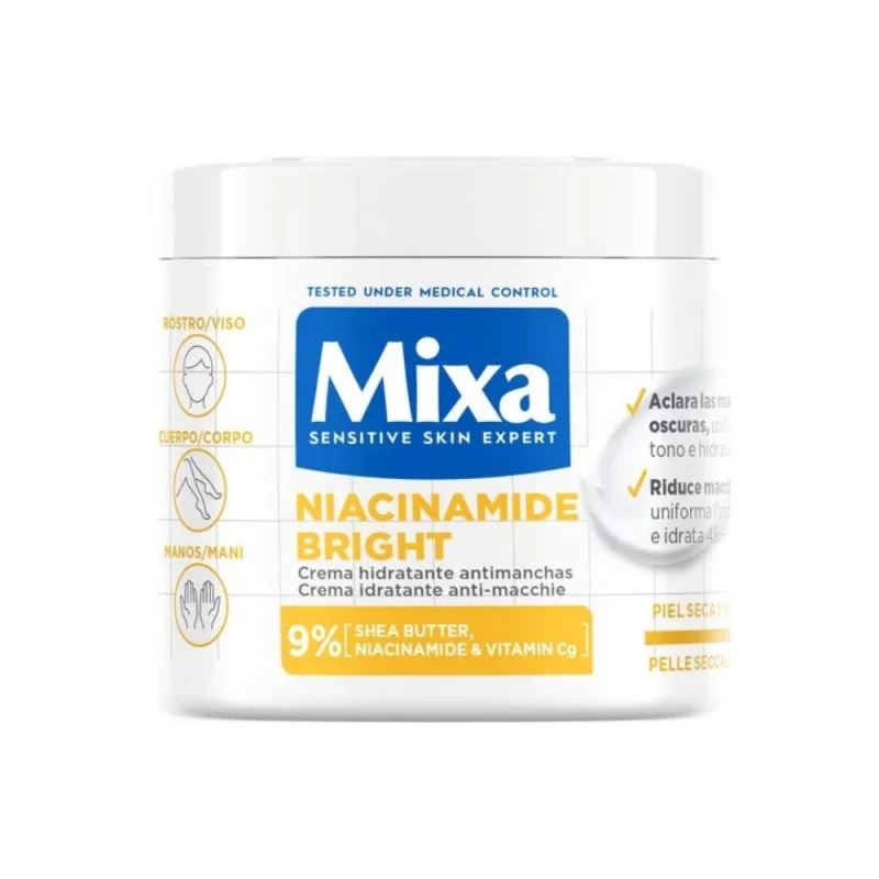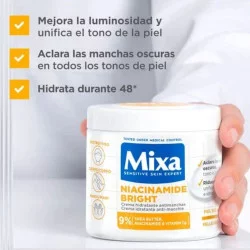 La crema hidratante Mixa con Niacinamida se encargará de ofrecerte lo que necesita, ya que es conocida por su textura densa y su habilidad para hidratar y alimentar de manera prolongada. Proporciona a la piel del cuerpo la ternura y nutrición requeridas, la cuida con su consistencia cremosa y la deja protegida contra la molesta sequedad.