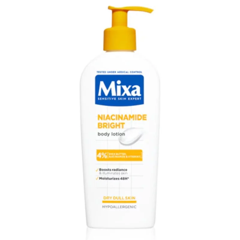 La crema para el cuerpo Mixa Niacinamide Bright ofrece la humectación esencial para la piel y la deja con una textura suave como el terciopelo.
