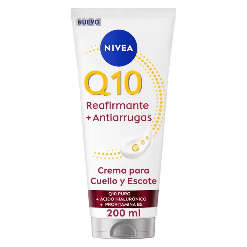 NIVEA Q10 Crema para Cuello y Escote Reafirmante y Antiarrugas enriquecida con Q10 puro, creatina y provitamina B5. Para una piel más firme y arrugas visiblemente reducidas en 14 días.