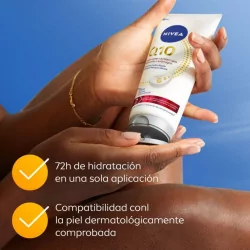 NIVEA Q10 Crema para Cuello y Escote Reafirmante y Antiarrugas está clínicamente probada para reducir la apariencia de las arrugas en cuello y escote. Su fórmula con Q10 puro, creatina y provitamina B5 está especialmente desarrollada para la piel delicada del cuello y escote. Resultados visibles en días: en sólo 7 días: 10 de cada 10 mujeres notan la piel más suave y tersa* y en sólo 14 días: reduce la apariencia de líneas finas y arrugas. Con el uso regular mejora la elasticidad de la piel y aporta 72 horas de hidratación en una sola aplicación. Compatibilidad con la piel dermatológicamente probada.