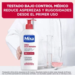 Descubre la nueva Loción Corporal Urea Cica Repair+ para piel muy seca de Mixa Sensitive Skin Expert, formulada con un 5% de Urea y con pantenol.