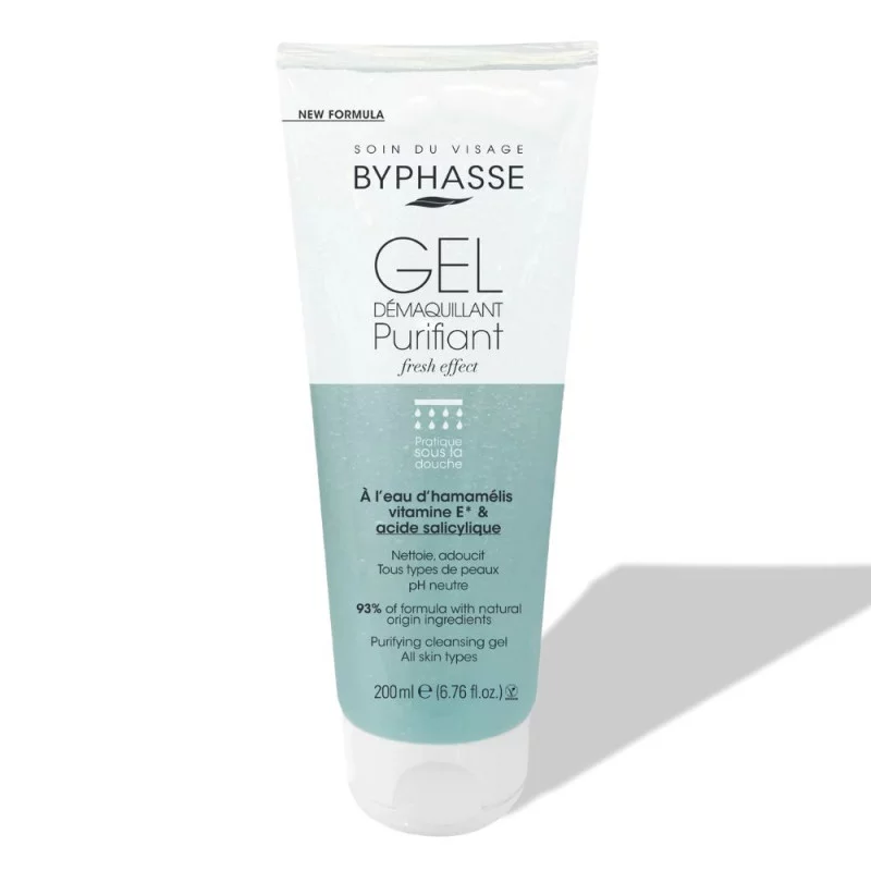 El gel desmaquillante purificante Byphasse limpia y tonifica tu piel respetando su equilibrio. Sú fórmula con pH neutro se adapta a todo tipo de piel. *Derivado de vitamina E.