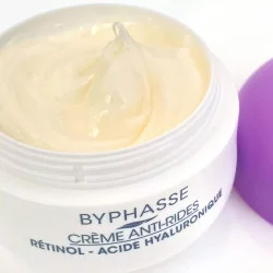 La crema antiarrugas Byphasse contiene un activo innovador que combina el retinol con el ácido hialurónico. Mejora el aspecto de las arrugas profundas y líneas de expresión, aportando elasticidad a la piel y manteniéndola hidratada durante 24 horas. La piel recupera firmeza, está más tersa y revitalizada.