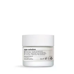 Age Solution es la respuesta al envejecimiento cutáneo gracias a la combinación de glicopéptidos de soja altamente purificados y pro-retinol, que se fusionan para ofrecer una potente acción antiarrugas y un incremento de la firmeza cutánea.