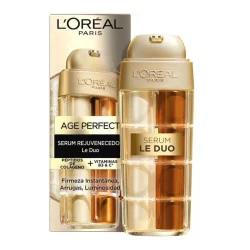 Descubre el secreto de una piel más joven con el L'Oréal Paris Age Perfect Le Duo Serum, 2 sérums en 1. Este innovador sérum de uso diario combina poderosos péptidos de colágeno con vitaminas B3 y Cg para ofrecerte resultados visibles en solo 7 días.