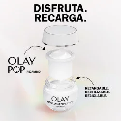 Los péptidos de colágeno, a diferencia de las moléculas de colágeno, pueden penetrar hasta 10 capas debajo de la superficie de la piel y están presentes en Olay Collagen Peptide24 Day Cream.