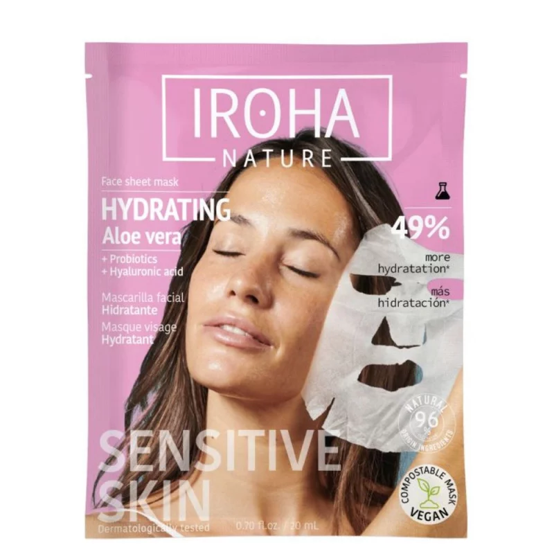 Mascarilla facial hidratante impregnada en Aloe Vera que proporciona una hidratación profunda regenerando y calmando la piel dañada e irritada. Además del aloe vera, esta mascarilla tisú contiene ingredientes como el ácido hialurónico y los probióticos que refuerzan la barrera protectora a la vez ofrecen un cuidado completo de la flora cutánea.