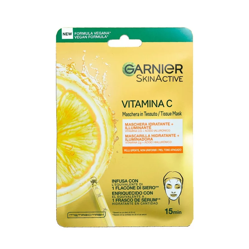 Garnier Tissue Mask Mascarilla Facial de Tejido con Vitamina C y Ácido Hialurónico.