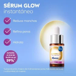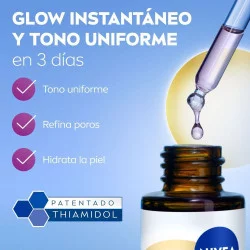 LUMINOUS630® SKIN GLOW Sérum Glow Instantáneo es el primer sérum de NIVEA que aborda las múltiples dimensiones del glow en la piel: proporciona un tono uniforme, refina los poros e hidrata. Su fórmula innovadora contiene Thiamidol®, ingrediente antimanchas altamente eficaz.
