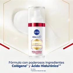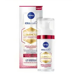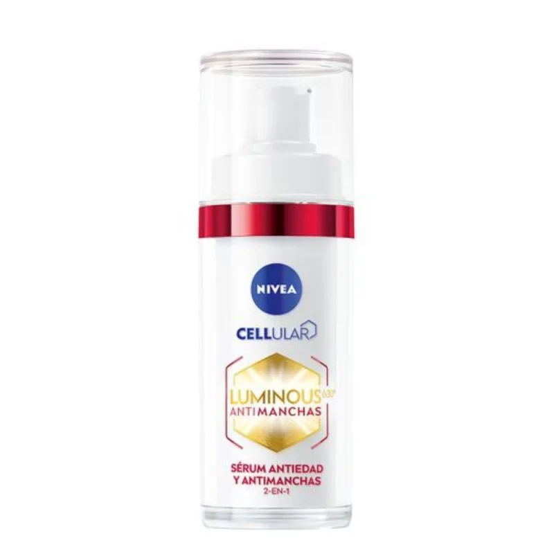 NIVEA Cellular Luminous630 Antimanchas Sérum Tratamiento Avanzado, el sérum Antimanchas Nº1 de NIVEA (en la selección de sérums de NIVEA), es un eficaz tratamiento de textura ligera que previene la aparición de manchas y las reduce sin importar su tipo, como las causadas por la exposición solar, el envejecimiento y cambios hormonales como el embarazo y la menopausia..