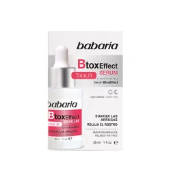 El sérum Botox Effect de Babaria proporciona un efecto antiedad global. Formulado con un Tripéptido Botox-like, difumina visiblemente las arrugas y relaja el rostro. Especialmente indicado para piel madura. ACTIVOS: Tripéptido Botox-like y Emolientes.