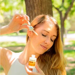 El Serúm Vitamina C antioxidante mejora la luminosidad de la piel. Serum de protección urbana, protege frente a la luz azul de los dispositivos móviles, y frente a la polución. Además estimula la síntesis de Ácido Hialurónico y Colágeno natural de la piel, mejorando la flexibilidad. Inhibe la glicación causando efecto antiedad. Reduce las manchas.