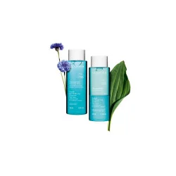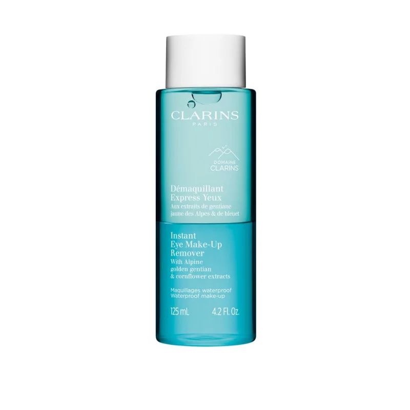 Este desmaquillante exprés para ojos está dirigido a las mujeres que adoran el maquillaje intenso o resistente al agua y quieren cuidar sus ojos. Su fórmula bifásica sin efecto graso elimina el maquillaje resistente al agua con suavidad. Enriquecido con extracto de genciana amarilla bio de los Alpes recolectada en el corazón de la Hacienda Clarins y extracto de aciano bio para una piel del contorno de los ojos calmada.