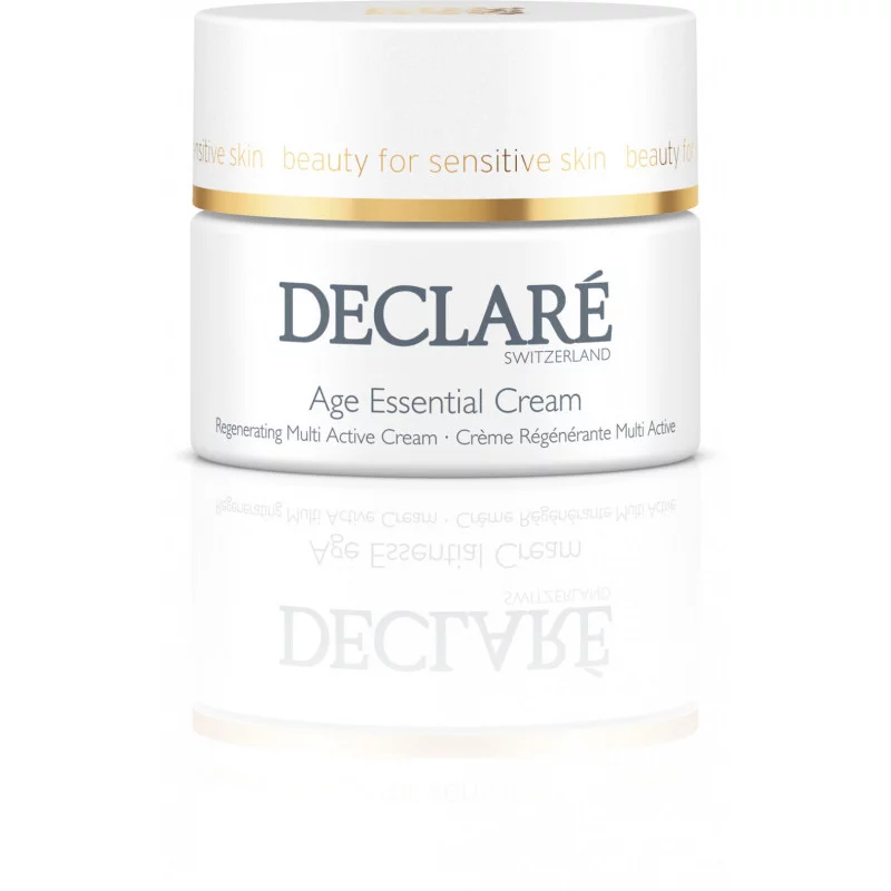 Declaré Age Essential Cream es una crema regeneradora para todos los tipos de piel, que responde eficazmente a las necesidades de las pieles maduras. Tan suave como potente, esta excepcional crema de textura rica se funde con la piel, liberando un confort extremo. Piel más firme, densa y uniforme; rostro rejuvenecido y radiante.