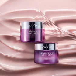 Lancôme presenta Rénergie Multi-Glow Night, una crema de noche antiedad diseñada específicamente para mujeres mayores de 60 años, cuya piel, debido al paso del tiempo, regenera la barrera protectora más lentamente, perdiendo así su naturalidad y vitalidad. La crema de noche Rénergie Multi-Glow está enriquecida con ceramidas, extracto de bayas rojas de Schizandra y extracto de linaza.