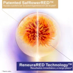 Contiene el extracto patentado SafflowerRED™, cultivado exclusivamente en Japón, que estimula la red de nutrientes y la autorregeneración de la piel, para combatir la pérdida de firmeza, las arrugas profundas y las manchas. Formulado con ReneuraRED Technology™ para una eficacia más rápida y prolongada.