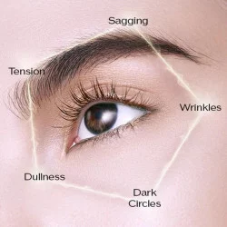 Crema para el contorno de los ojos, trata las ojeras, la flacidez, las arrugas y la tensión muscular.