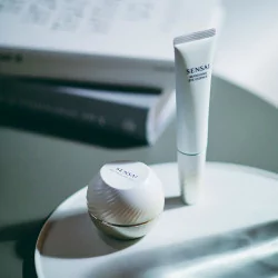 TOTAL EYE TREATMENT es el primer ritual de SENSAI para el contorno de ojos con un enfoque dual que renueva y activa la juventud de la mirada. Combinando dos fórmulas complementarias, este tratamiento ofrece una experiencia sensorial única basada en el contraste de temperaturas: una esencia refrescante y una crema de efecto "calor", que revitalizan visiblemente la zona ocular.