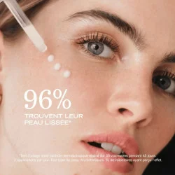 Enriquecido con ácido hialurónico, procolágeno y niacinamida, este sérum actúa en el corazón de las células epidérmicas y combate el envejecimiento favoreciendo la regeneración celular: alisa, unifica e ilumina la piel.